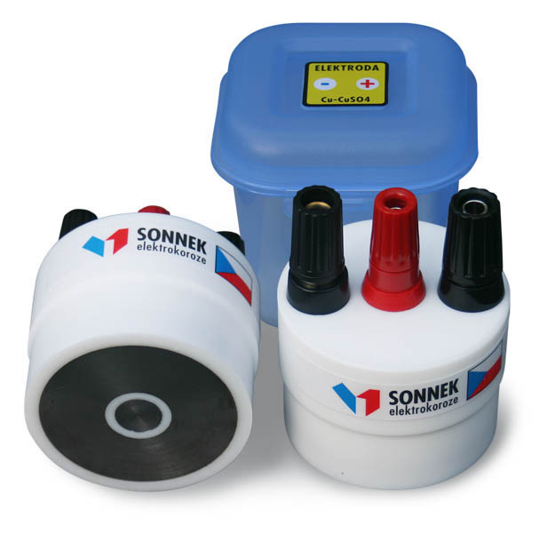 Měděná referenční elektroda Cu-CuSO4 přenosná, v soupravě přenosného kufříku a multimetrem, pro trvalé uložení do země a k řízení usměrňovačů